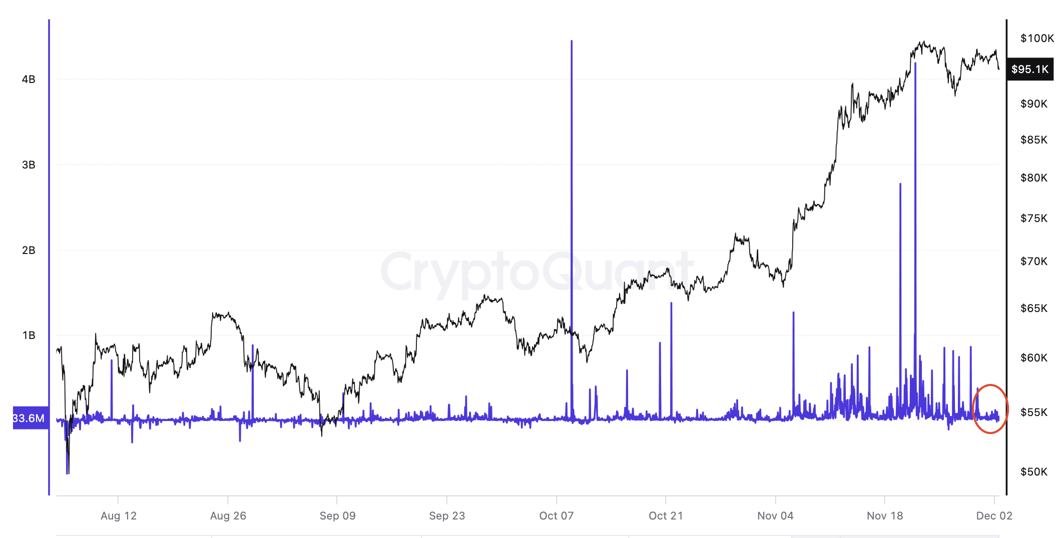 最近的數據顯示,截至 11 月 29 日當週,比特幣投資產品的資金流出量達 4.57 億美元。此外,儘管 11 月份流入和流出量有所波動,但比特幣 ETF 的餘額自 11 月 25 日以來基本保持不變。這種缺乏變動表明機構或大型投資者對比特幣的興趣有所減弱,而這種興趣在推動比特幣價格方面起着關鍵作用。