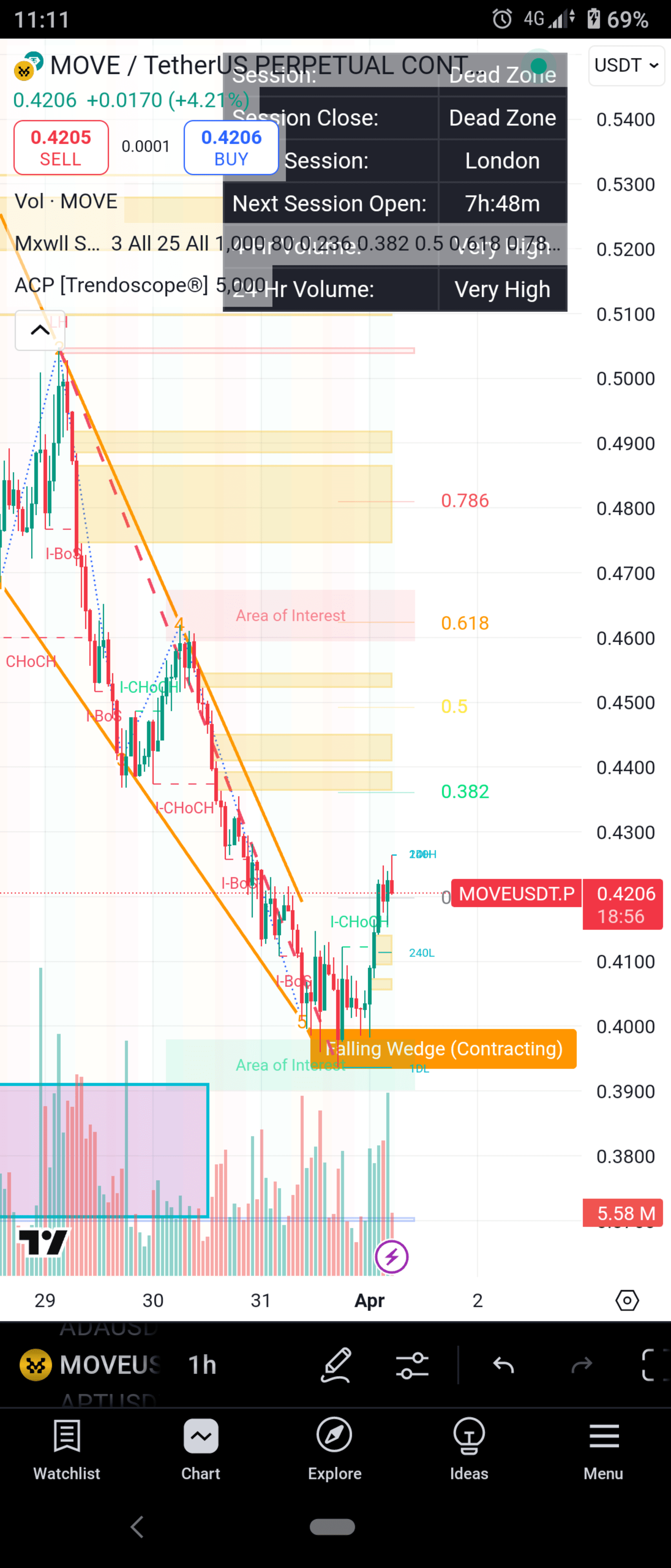 🔵 看漲設置爲主要:如果價格保持在 $0.4180 以上,預計將繼續上漲至 $0.4500+。
