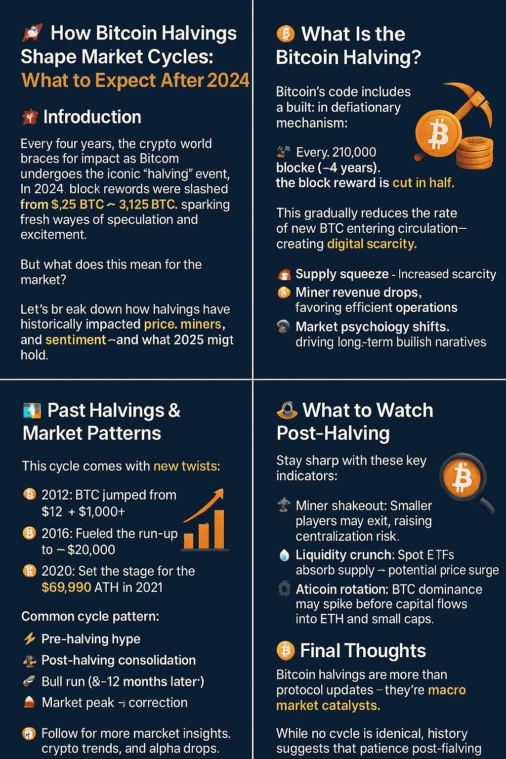讓我們分析一下減半歷史上如何影響價格、礦工和情緒,以及2025年可能會有什麼。