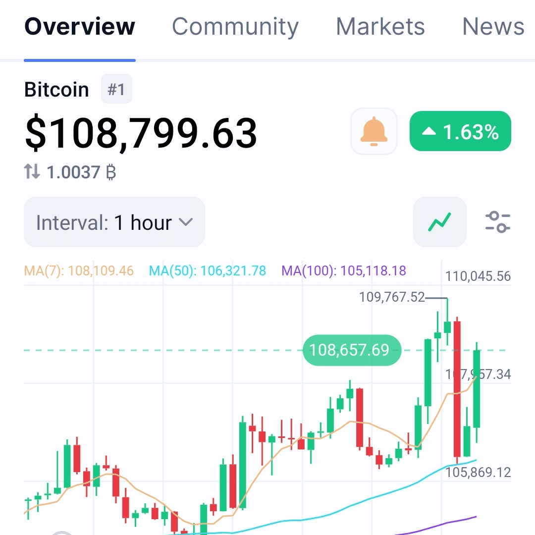 截至2025年5月22日,比特幣(BTC)交易約為$108,163,較前一收盤上漲1.33%。