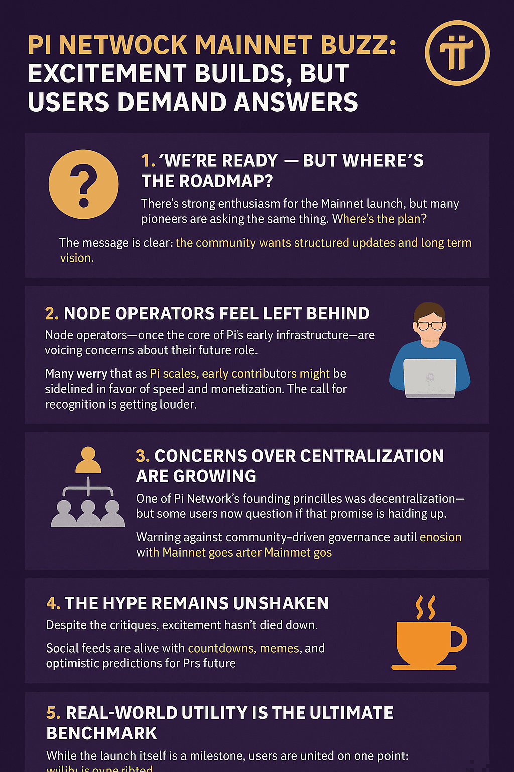 隨着對 Pi Network 全球主網推出的期待增加,社區的反應充滿了樂觀、對明確性的壓力以及對更大透明度的呼聲。以下是用戶真正表達的內容: