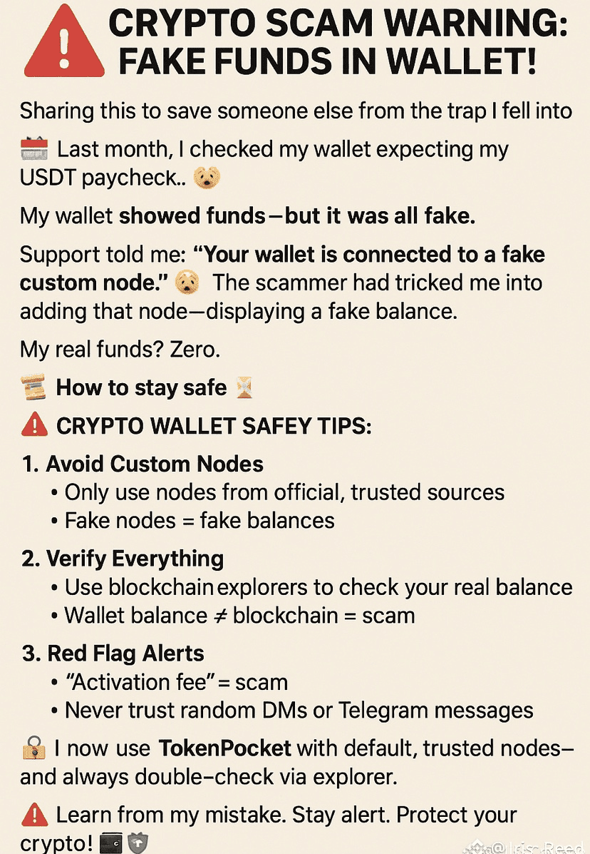 我在不知情的情況下連接到了一個欺詐性的自定義RPC節點——這個節點是爲了顯示虛假的資金,並誘使用戶發送真實的錢來“解鎖”它們。