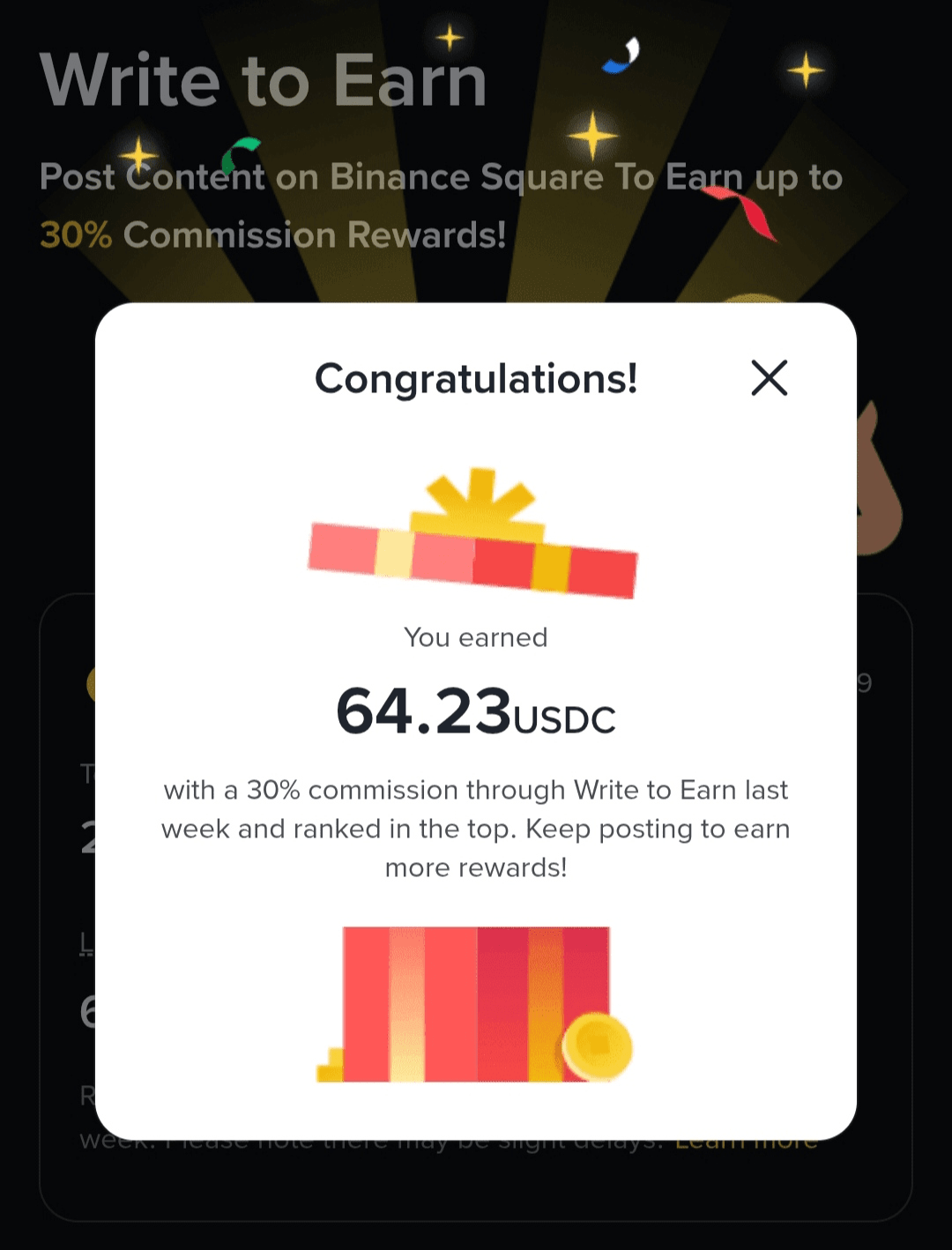 這是我主要的賺錢方式。我在幣安廣場發佈每日交易信號或加密貨幣的更新。當人們查看我的帖子或點贊時,幣安有時會獎勵我。通常我每天發佈一到兩個更新,這讓我每天收入在2.50到5美元之間。我的帖子越規則和有用,我的收益就越高。