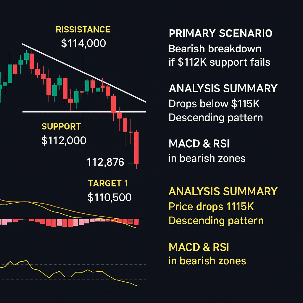BTC 在突破關鍵支撐後已轉入看跌動量階段。雖然反彈是可能的,但除非 BTC 快速強勢收復 $114K,否則向 $110K 看跌延續仍是更高概率的情景。交易時要小心,並在進入頭寸之前驗證信號。