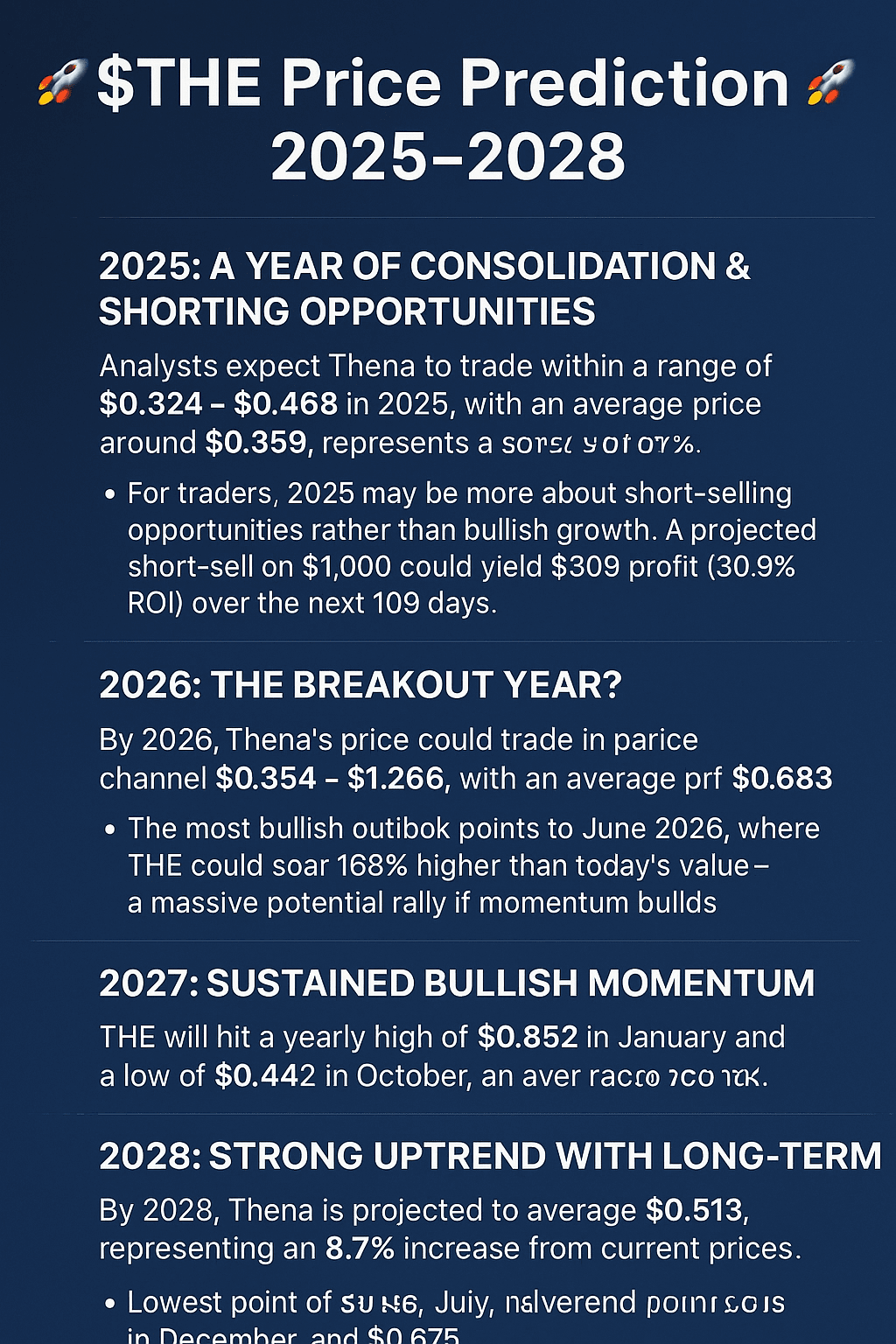 E) 正迅速成爲投資者密切關注的名稱。隨着波動性帶來風險和機會,未來幾年可能對Thena的旅程至關重要。以下是專家對2025年至2028年THE的詳細看法。