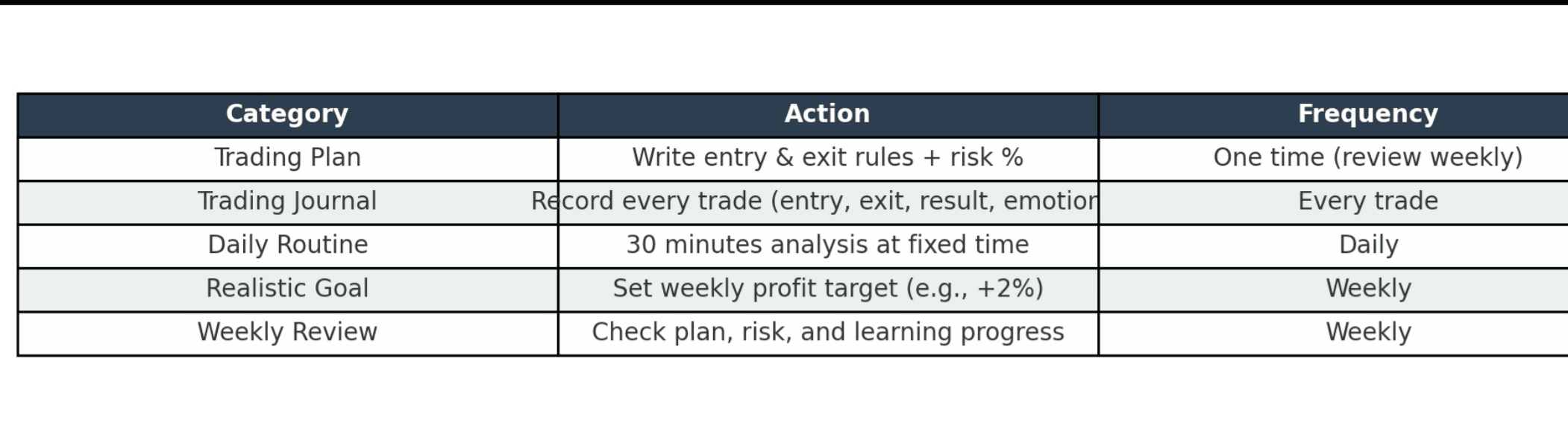1. 寫下交易計劃(進出規則 + 風險管理)。