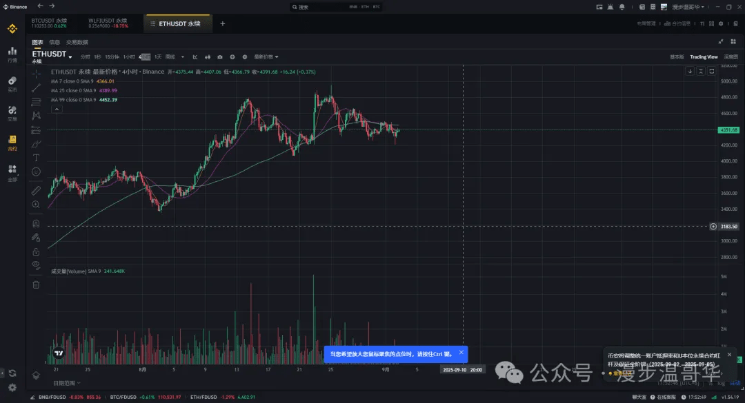 ETH近期走勢包括反彈力度相對來講是比較弱勢的,究其根本原因是8月22日ETH新高後一直處於釋放第一波ETH獲利籌碼了結的狀態,這幾乎是一個必經的一個過程(參考大餅去年到今年走勢),市場需要時間慢慢消化,這幾日很多朋友諮詢筆者ETH趨勢是不是結束了,筆者認爲從各方面看四季度整個金融市場包括風險資產還是值得去期待,這輪慢牛從2023年10月開始到今日,短期並沒有結束的跡象。