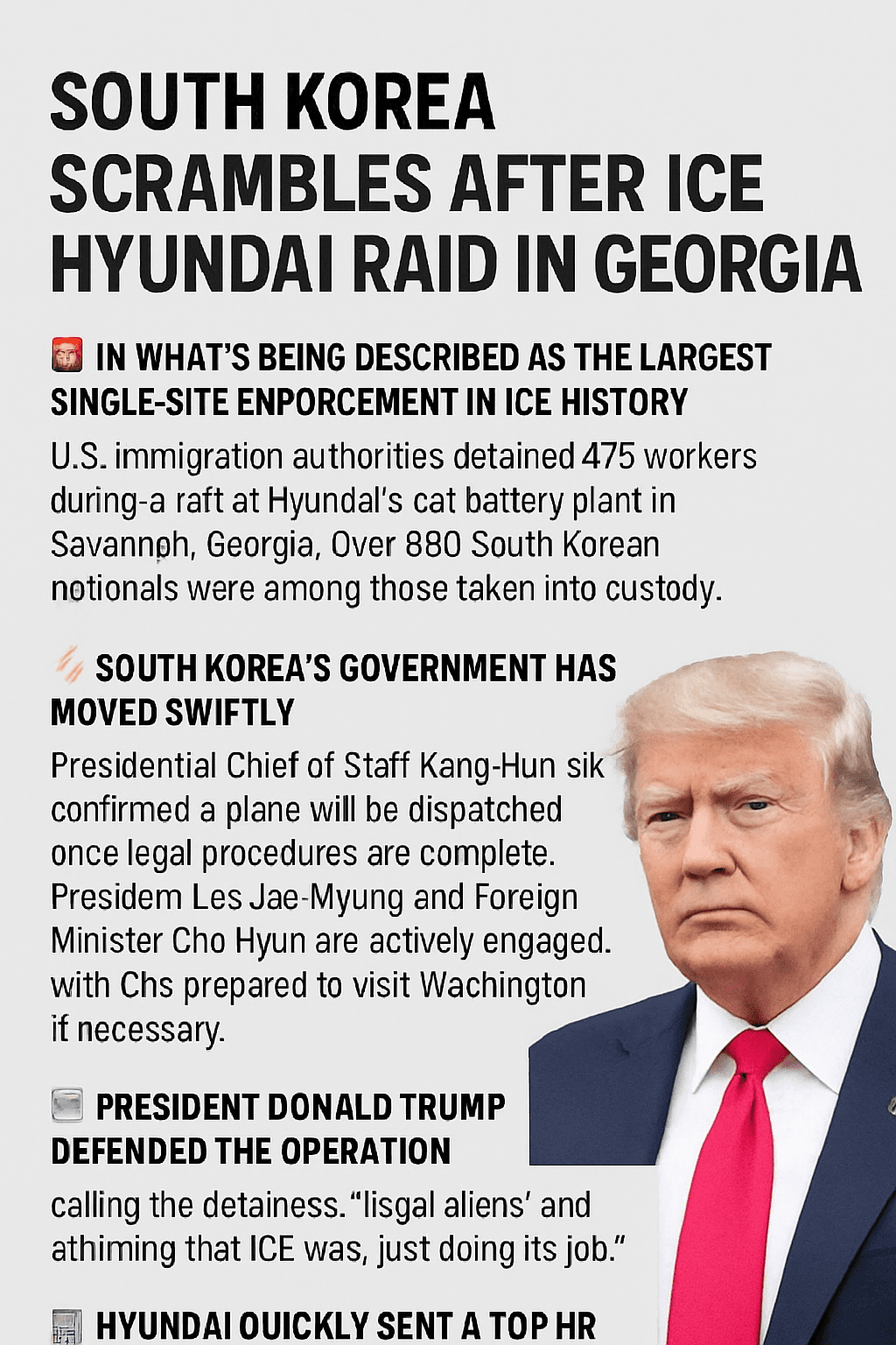 在喬治亞州薩凡納的現代汽車電池工廠進行了一次戲劇性的移民突襲,美國移民與海關執法局(ICE)拘留了475名工人——其中超過300名是韓國國籍。官員表示,這是ICE歷史上最大的一次單一地點執法行動。