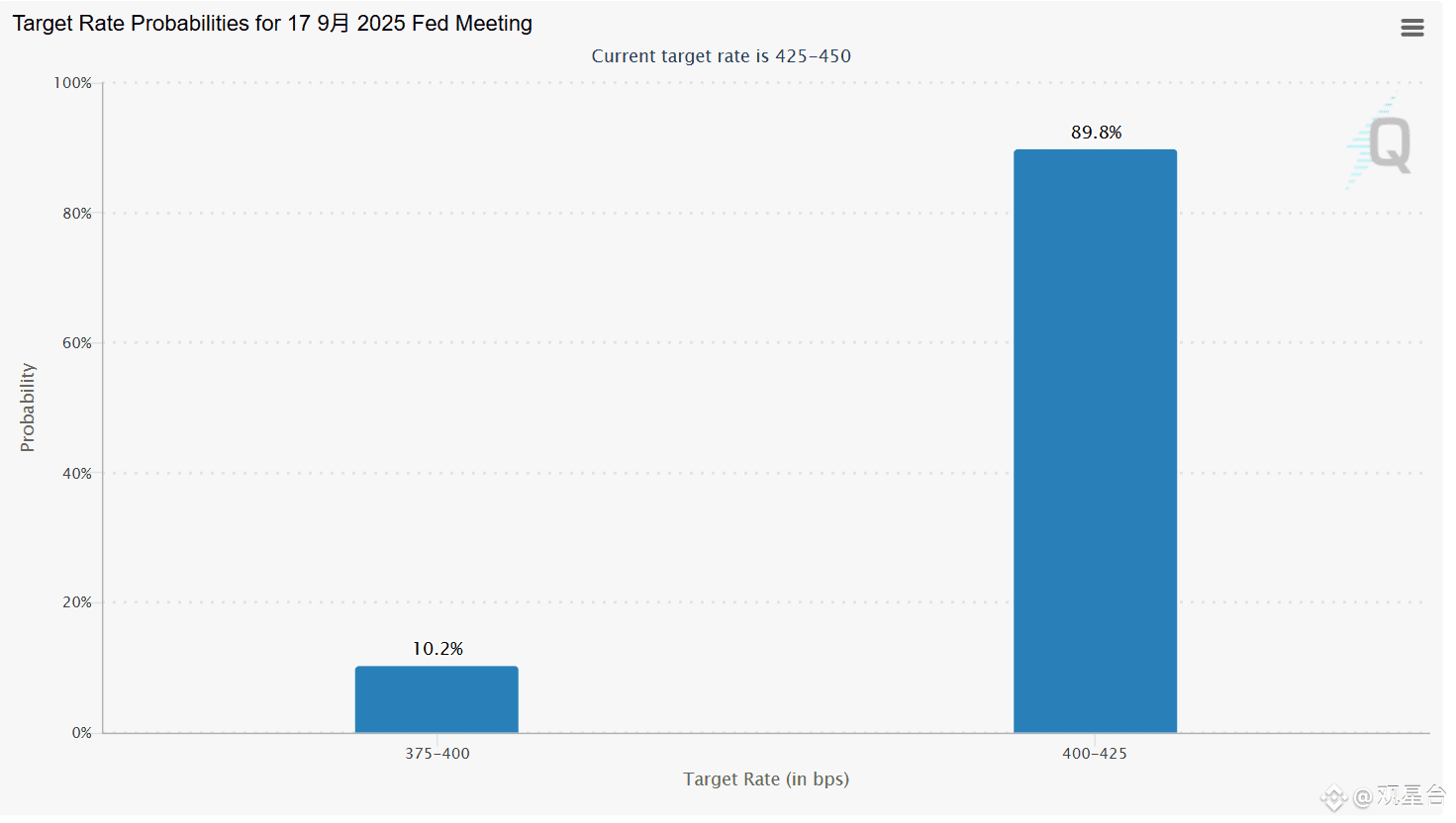 就业市场的疲软给了美联储一个降息的“完美借口” 。根据芝加哥商品交易所(#CME)的FedWatch工具,市场目前预计在9月会议上降息25个基点的可能性高达89% ,甚至一些分析师将这一概率上调至92% 。
