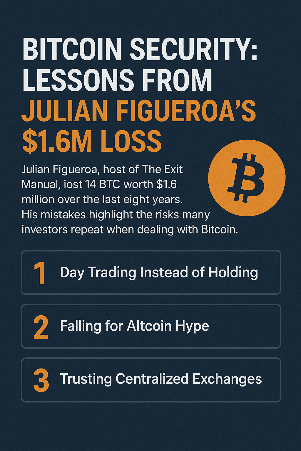 朱利安·菲戈羅亞,《退出手冊》的主持人,在過去八年中損失了14 BTC,今天價值近160萬美元。他的錯誤突顯了許多投資者在處理比特幣時反覆出現的風險。