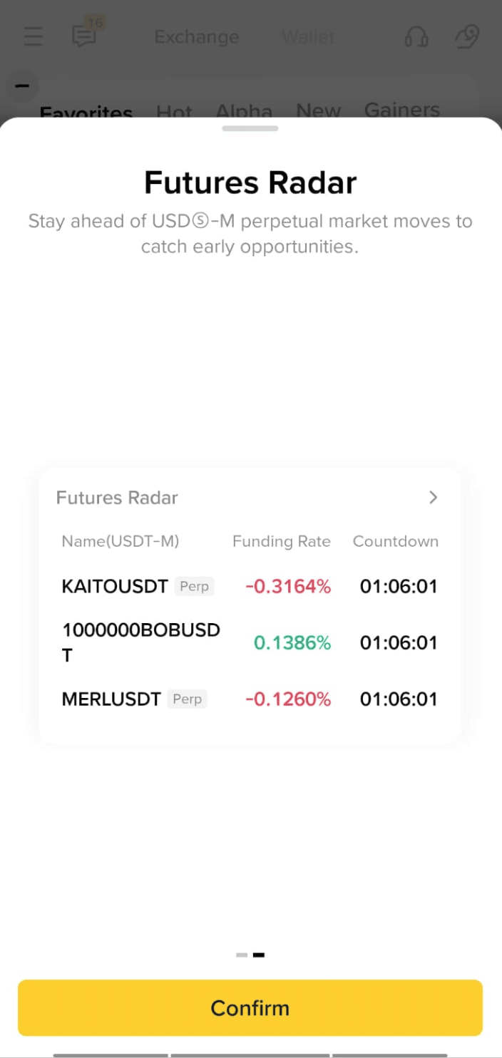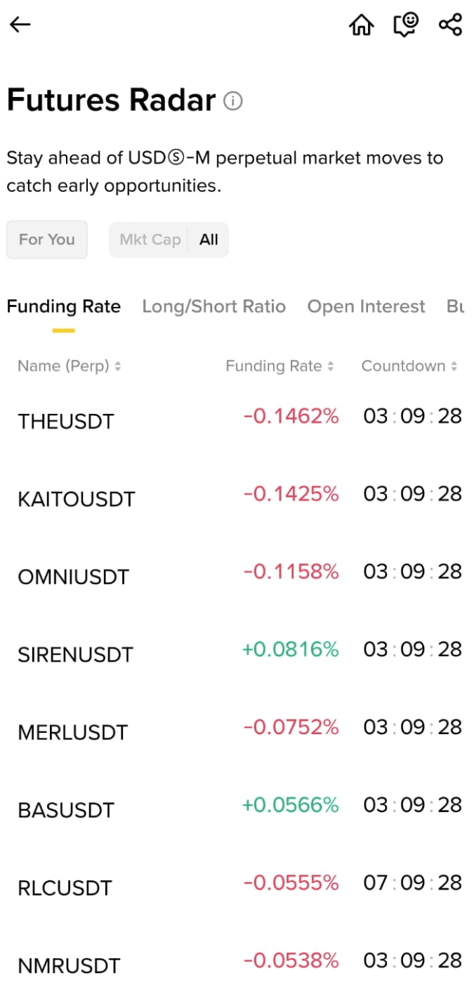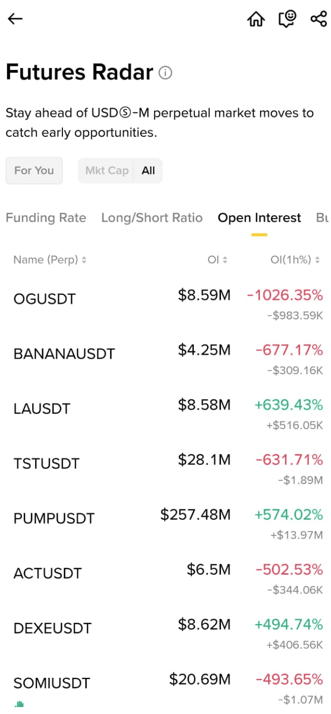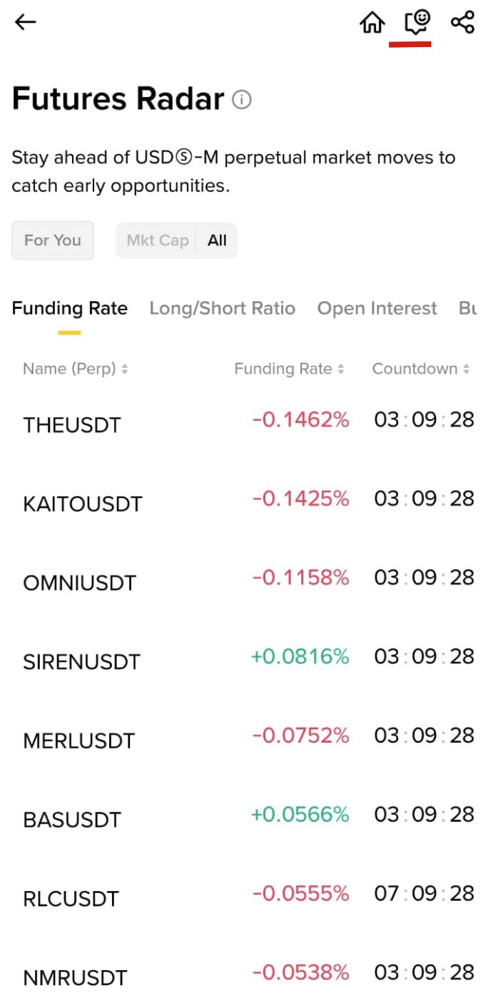 擁有USDⓈ-M永久合約訪問權限的用戶(受其國家或地區法規限制)可以查看期貨雷達小部件。