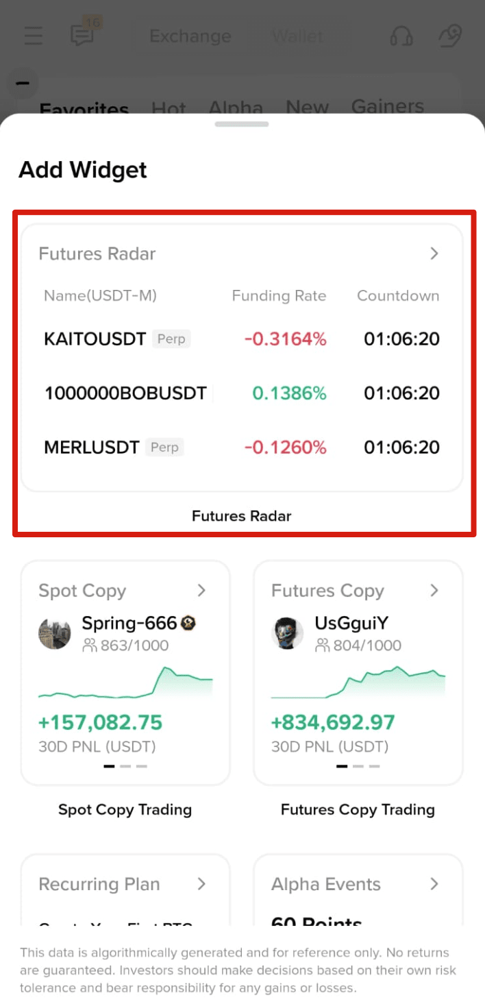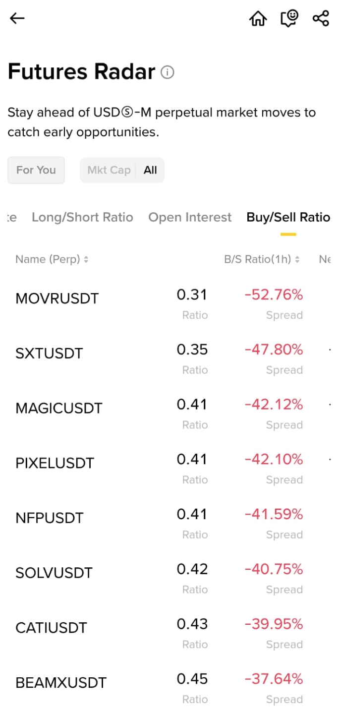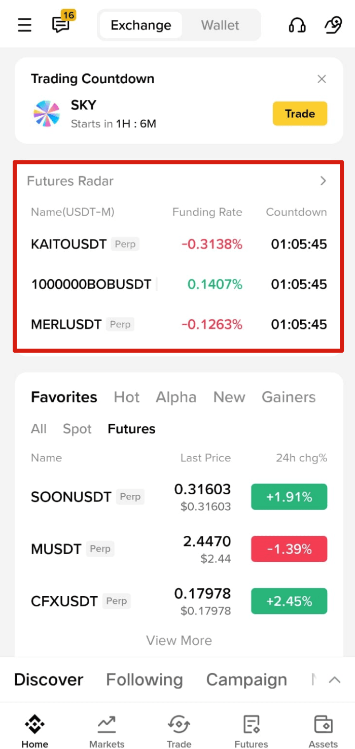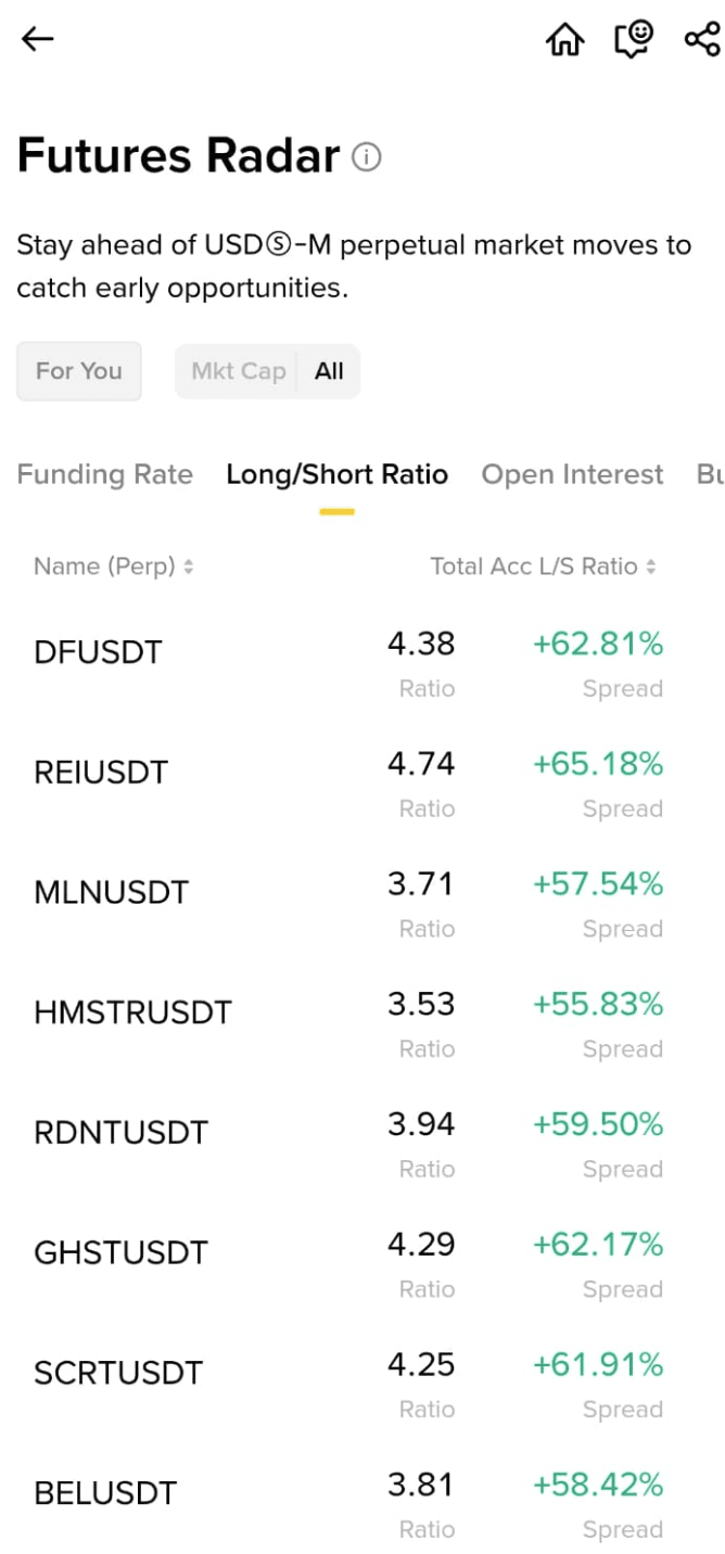 擁有USDⓈ-M永久合約訪問權限的用戶(受其國家或地區法規限制)可以查看期貨雷達小部件。