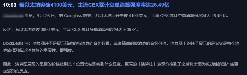 昨天Coinglass的數據炸了波小水花:要是ETH能衝上4100美元,主流交易所裏累計的空單清算強度能摸到26.49億;反過來,要是跌破3800美元,多單清算強度也有9.39億。