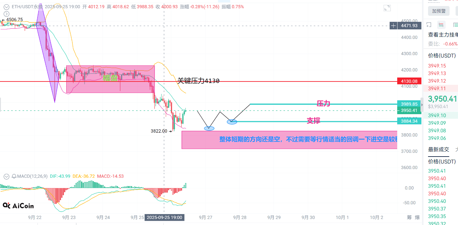 想空的:別追現在3945的位置,等跌到3884附近看看承接,或者反彈到4130卡殼了再進,止損放4150上方,安全邊際高;