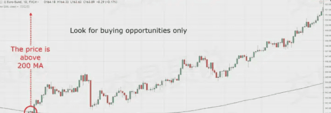當價格高於200日均線時,在支撐位尋找買入機會;