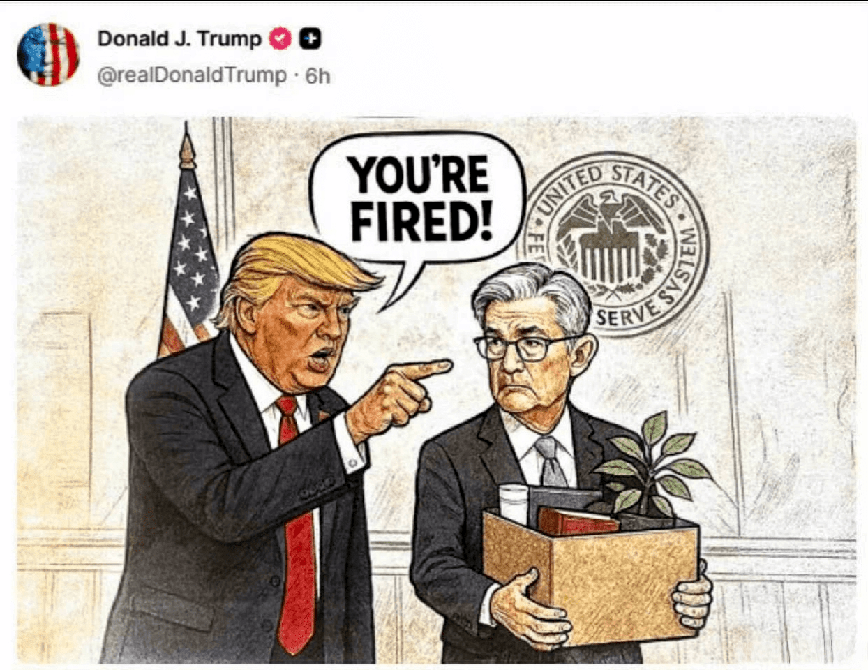 喫瓜了嗎?特朗普又在網上整活了!週六這大佬直接甩了張AI梗圖,畫面裏他對着美聯儲主席鮑威爾霸氣喊出“你被解僱了!”配的還是鮑威爾抱着紙箱子的委屈表情包。