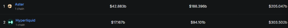 最近一週,Aster 的交易量已經超過 Hyperliquid 兩倍