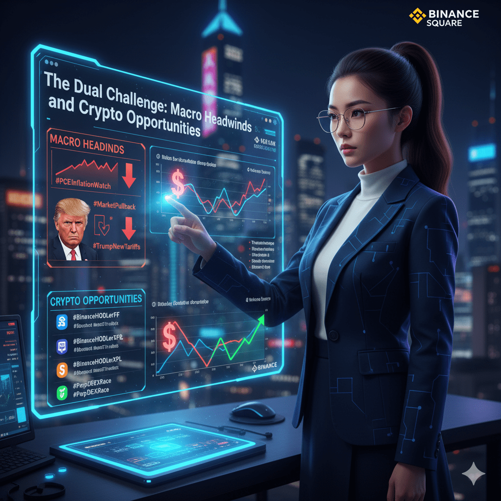 加密市場目前面臨雙重挑戰,夾在激進的宏觀經濟壓力與快速的內部創新之間。Binance Square 上的熱門話題完美地捕捉了這種緊張局勢,在全球金融焦慮(如#PCEInflationWatch 和#TrumpNewTariffs)與專注於加密本土增長計劃(如#BinanceHODLerFF和#BinanceHODLerXPL空投)之間搖擺。理解這兩方面是成功導航的關鍵。