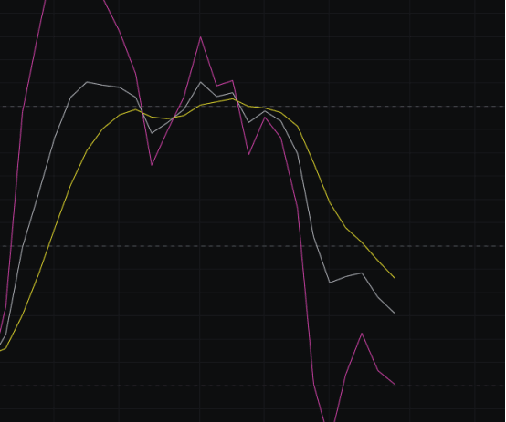 Macd上看,目前能量柱下移,快線和慢線也在向下走,形態上對多軍不利,需要保持觀察。