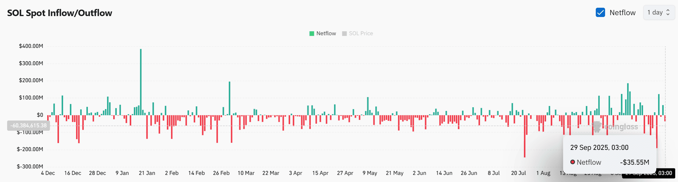持續的資金流出減輕了拋售壓力,並支撐了看漲的論調。此外,這些走勢凸顯了人們對 Solana 前景的信心日益增強,尤其是在大多數交易所的資金流入仍然低迷的情況下。