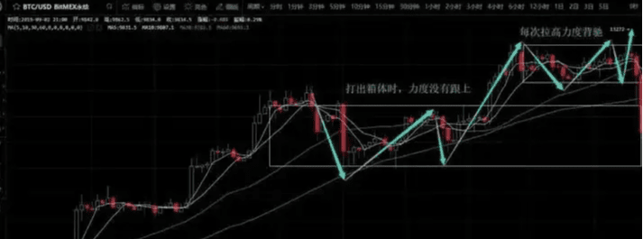 OP">隨着兩次調整後可以看出多頭力量突然增加,迅速上破箱體(這時候要注意回踩幅度),一旦回踩不觸及上軌,同時下方MACD指標出現底背離說明短期多頭開始主導市場。