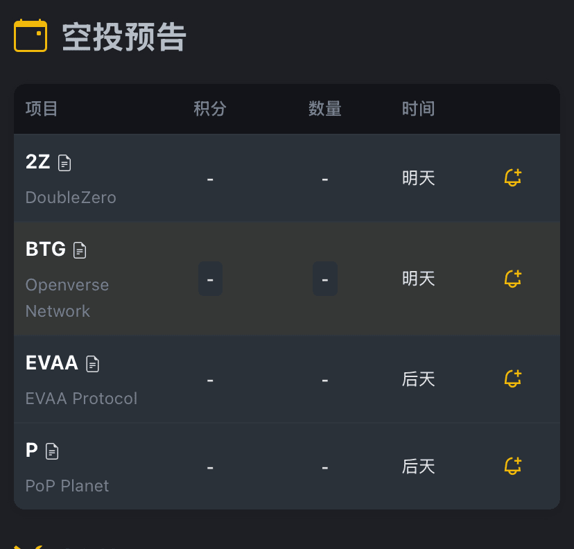 • BTG:搜索結果顯示,BTG是2017年比特幣分叉產生的代幣,幣安曾於當年完成1:1空投分發,與本次10月Alpha空投無關,當前無新空投計劃。