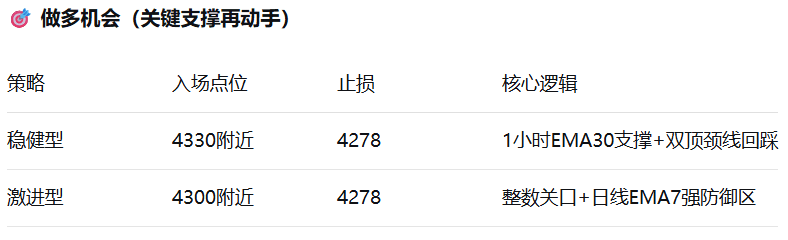 均線:價格穩站EMA7(4361)上方,EMA30(4289)構成強支撐