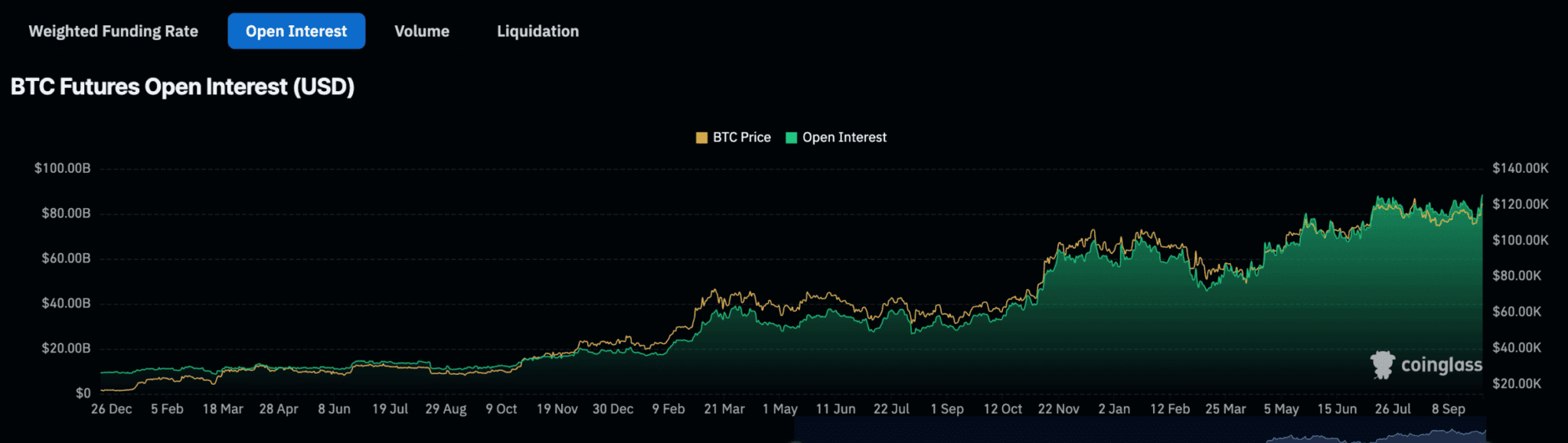 衍生品市場的樂觀情緒也在上升。比特幣期貨的未平倉合約已攀升至創紀錄的880億美元。現貨比特幣ETF正見證大量流入,進一步加強了機構日益增長的信心。