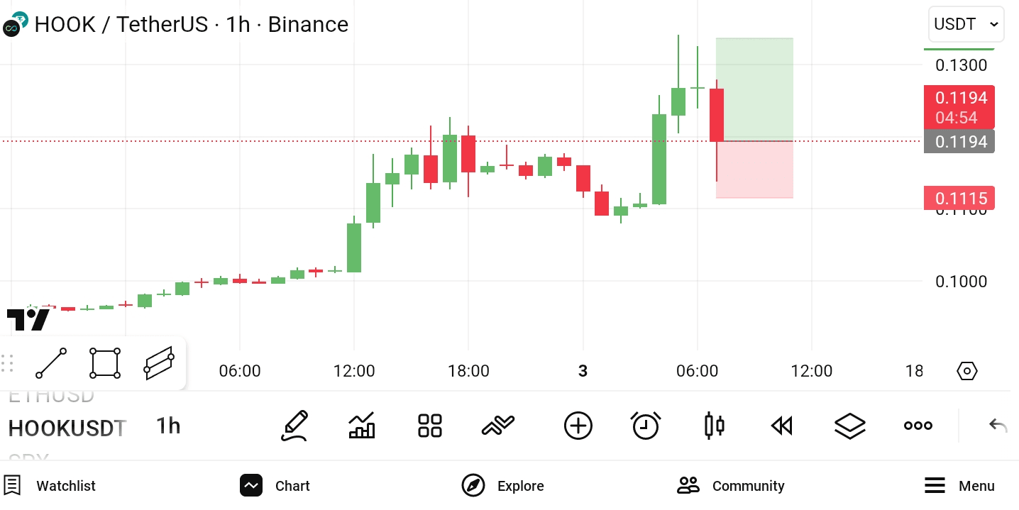 風險:中等(強勁反彈自0.1194支撐,形成看漲反轉形態)