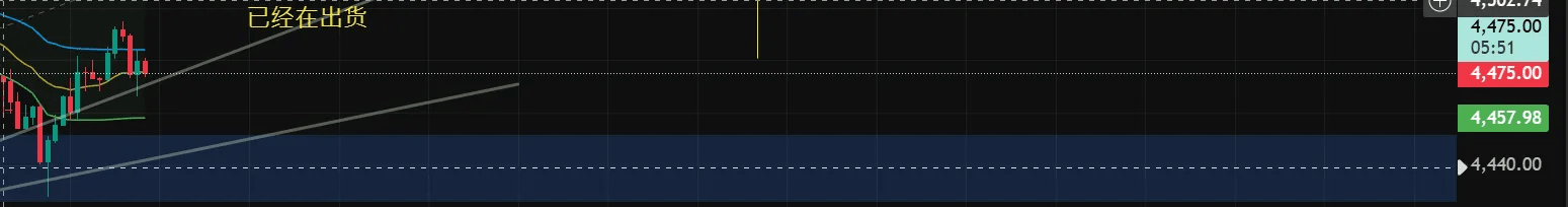 然後再把價格向4427拉。這樣的話肯定又會有加倉空頭的,因爲看上去像下跌反彈再下跌,然後多頭也就會害怕了,感覺被套在了高點,因爲都看好能突破4600。所以把價格製造成下跌反彈再下跌的趨勢是最好的。並且越低越有空頭來加倉。就是感覺大的要來了。