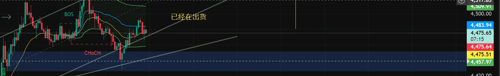 那麼再來補充一個,主力往往會在第一次下砸後,利用市場反彈或者新多頭的涌入,再次賣出,這也就很好地解釋了爲什麼價格即將突破4500的時候,沒有很好地跟隨,也就是此時此刻,正在出貨。(我已經跑了)