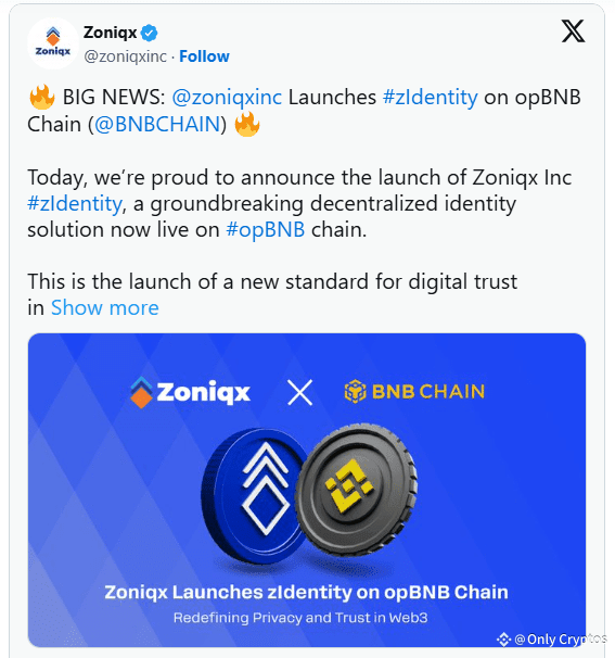 Zoniqx Launches zIdentity on opBNB: Decentralized identity (“zIdentity”) went live on opBNB, supporting tokenization/RWA compliance and user verification flows—another block in BNB’s compliant-friendly stack.
