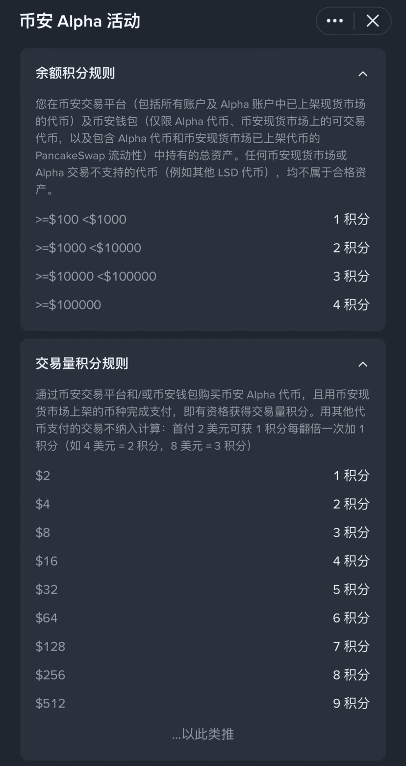 2. 規則會變: 幣安爸爸說改就改,常回Alpha頁面看看公告。