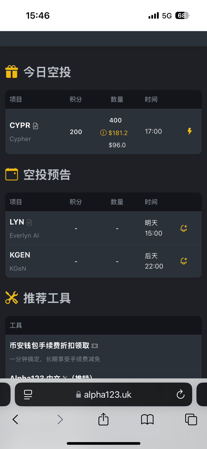 · 收益: 15天積攢的積分,足夠你兌換1-2次空投機會,試水完全夠用!