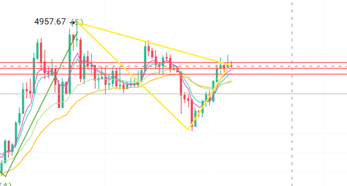 只要ETH保持在50日均線和上升趨勢線上方,分析師預計其將繼續向4,900-5,000美元區域邁進。如果未能突破4,700美元,則可能導致4,260-4,450美元之間的盤整。