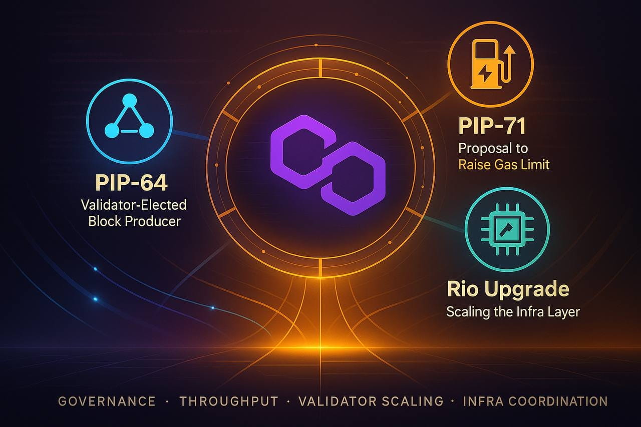 本週 Polygon 治理中的活動加速:PIP-64(驗證者選舉的區塊生產者)、PIP-71(提高 gas 限制的提案)以及 Rio 升級社群和開發者討論主導著議題。這些提案的目的是提高吞吐量並使驗證者/生產者架構具備擴展準備。市場和基礎設施團隊的反應顯示了這一變化中隱藏的機會和挑戰。