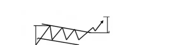 當價格突破了上升楔形的上邊界,短線交易者就可以進場做多了,而價格的最小漲幅爲楔形區域內最寬處的垂直距離。