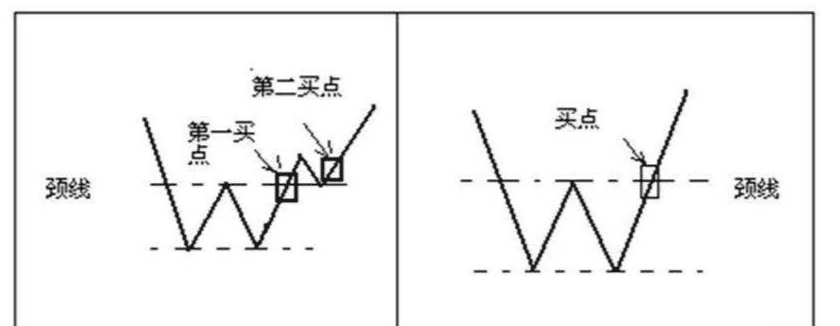 如果將價格反彈的高點用一條水平橫線連接,便形成了雙重底的頸線。如果價格向上突破了頸線,則意味着市場底部已經形成。價格在未來就要大規模上漲,最小的漲幅就是頭部到頸線的垂直距離。