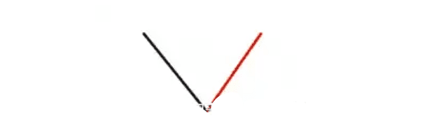 如上圖所示爲V型底的示意圖,它是指價格在暴跌過程中,出現了快速地向上反彈,但時間非常