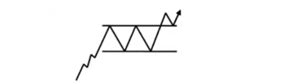 上升矩形有可能出現在市場的上漲過程中,也有可能出現在市場底部。它是指價格從一個矩形的區城內上下震動,當價格突破了矩形的上:邊線時,意味着價格走出盤整趨勢,就嬰快速上漲。此時短線交易者應該在突破之時立即趕緊買入。