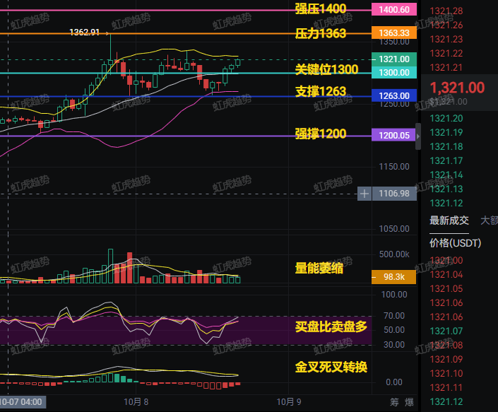 金叉死叉頻繁轉換:1小時圖顯示均線系統持續糾纏,這是典型變盤前兆