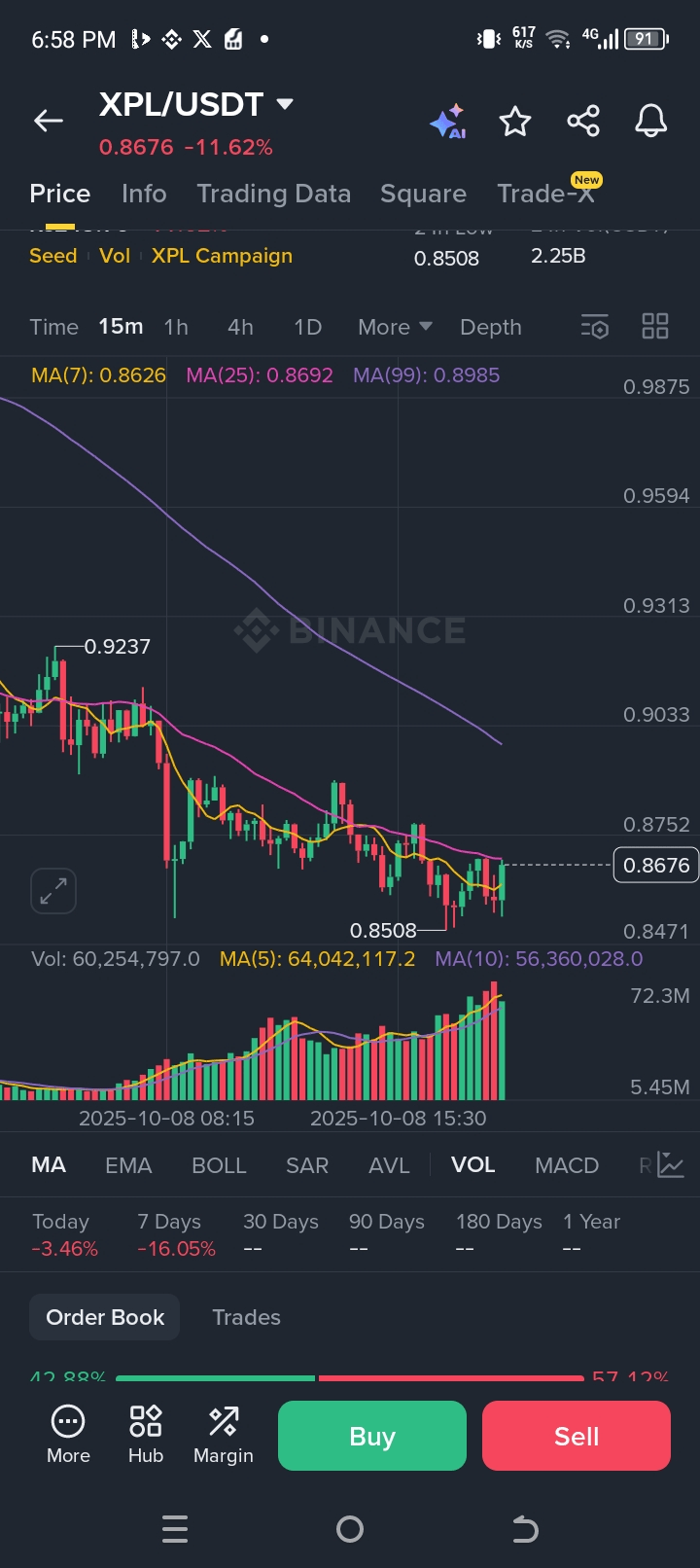 Plasma ($XPL ),作為加密貨幣領域的一個新興參與者,最近 24 小時內經歷了顯著的價格修正。根據最新數據,$XPL 的交易價格介於 $0.870432 和 $1.428594 之間,標誌著 24 小時內下降 -11.14% 至 -11.98%。