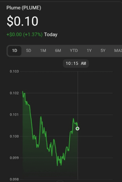 在24小時內,PLUME的波動範圍在$0.09765和$0.10307之間。