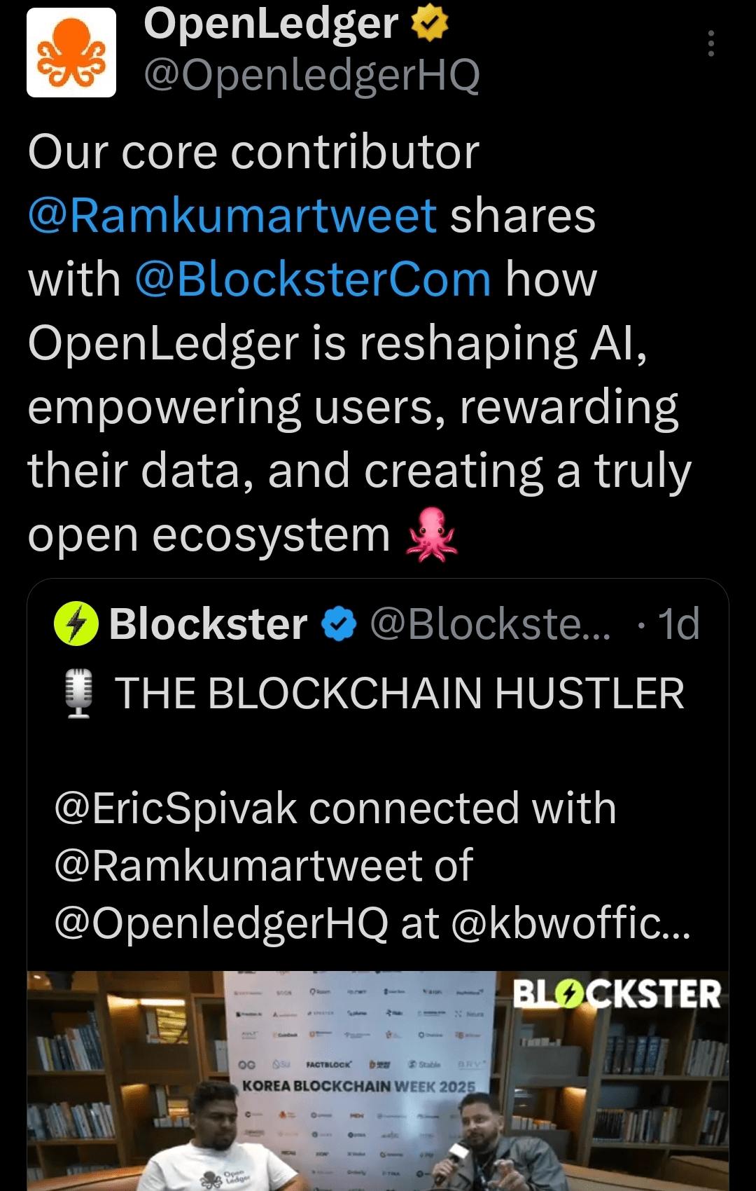 🚀 @Ramkumartweet 剛剛與 @BlocksterCom 坐下來,分享有關 OpenLedger 的知識。💥