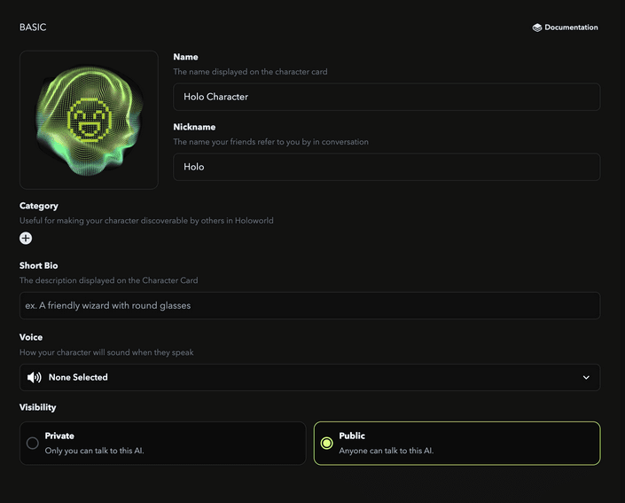 任何人都可以進入,設置一個角色,並選擇個性、技能、外觀和聲音。一旦代理準備好,就可以在代理市場上啟動。在那裡,代理可以被出售、交換,或僅僅用於現實生活中的情境,如直播、遊戲、社交平台或互動故事。