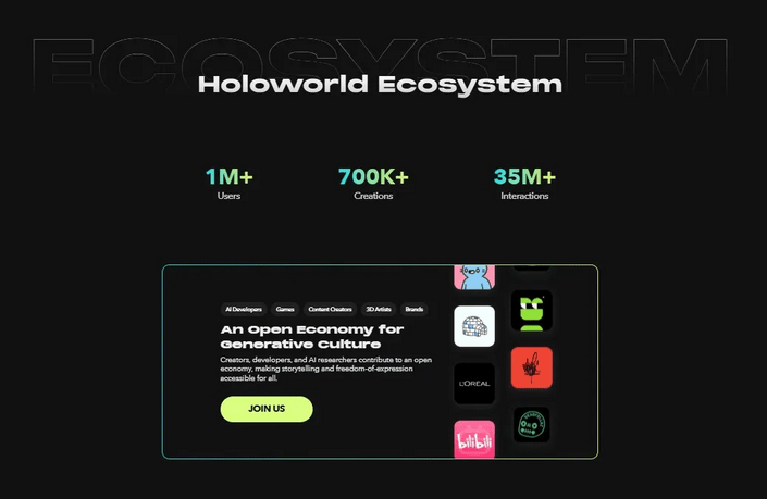 Holoworld 超越了理論。超過 100 萬名成員、700,000 創作和 3500 萬次互動已經證明了它的成功。根據 Gate Learn 的數據,鏈上交易有 160 萬次,130,000+ 活躍 #solana 錢包,註冊用戶超過 900,000 名。目前存在著 60 多個 AI 機器人。此外,Holoworld 正在通過與 L'Oréal、Bilibili 和 NFT 項目 Pudgy Penguins 的合作展示其實用性。