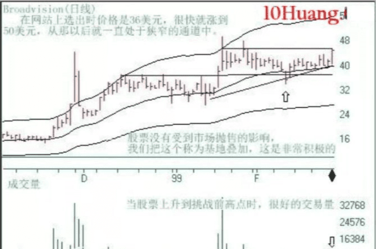 圖中上箭頭:跌破底部趨勢線,快速收回,意味着沒有受市場拋售影響。這種形態是2個基地疊加,是非常積極的。【相當於傳統形態的頂底互換】