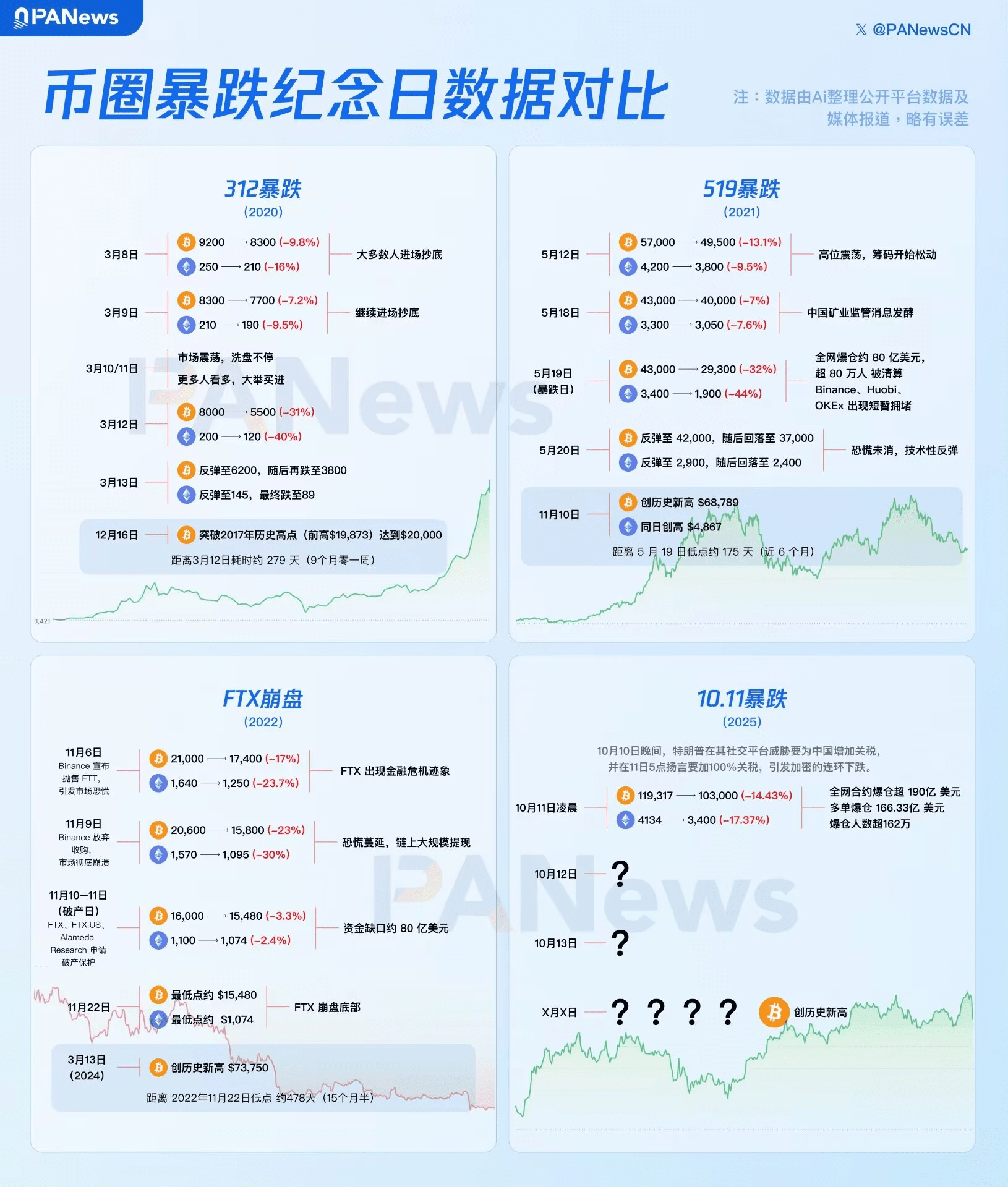 比特幣等主流幣高位閃崩,山寨幣更是如同“跳樓機”般暴跌。短短數小時內,近200億美元的槓桿資金被清算殆盡,創下加密史上最大爆倉紀錄。這場突如其來的風暴,是宏觀政策預期驟變引發的連鎖反應,槓桿過度、流動性驟降,加之恐慌情緒迅速放大,最終引發了一場連鎖雪崩。在這場史詩級清算之後,留下的不僅是慘烈的數據,更暴露了市場深層的結構性隱患,也引發對未來走勢的擔憂。本文PANews整理了市場對週期變化和行情走勢的多維看法。整體來看,本輪加密市場的劇烈波動既是一次去槓桿的洗禮,也是市場週期性調整的重要信號。主流幣表現相對穩健,而山寨幣則因流動性枯竭和結構性風險暴露,部分項目可能難以恢復。短期內市場仍可能經歷餘震和劇烈波動,但從中長期視角看,暴跌已釋放極端恐慌,也爲理性佈局提供了窗口。對於投資者而言,核心策略應是控制風險、精選資產、分批佈局,避免被市場情緒牽着走。