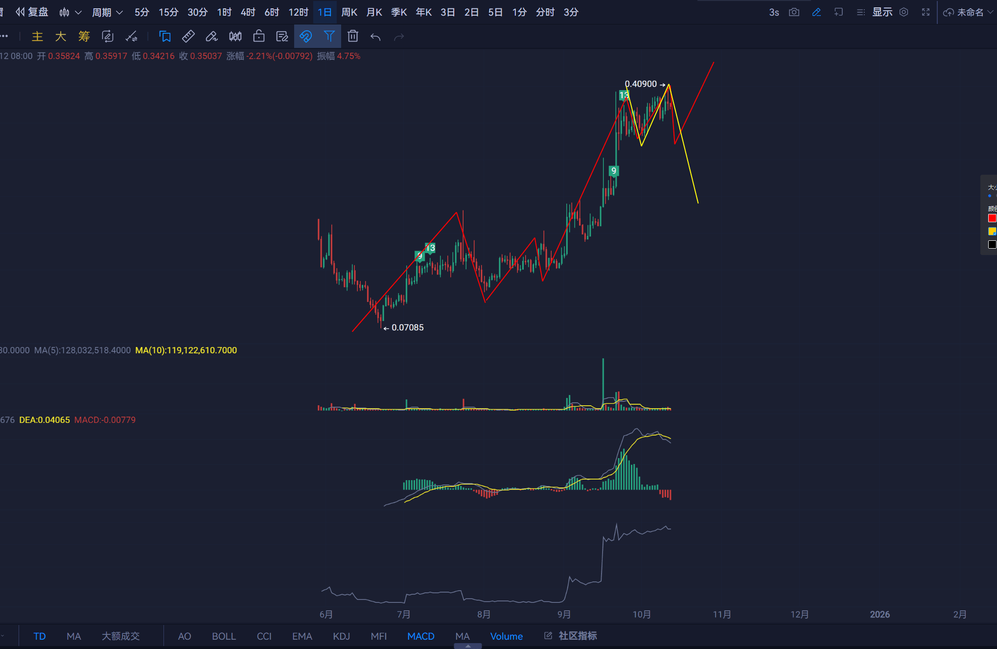 未來幾天就是以 震盪成第二個中樞做運動 然後打出向下一筆 其他理論上叫二次探底。