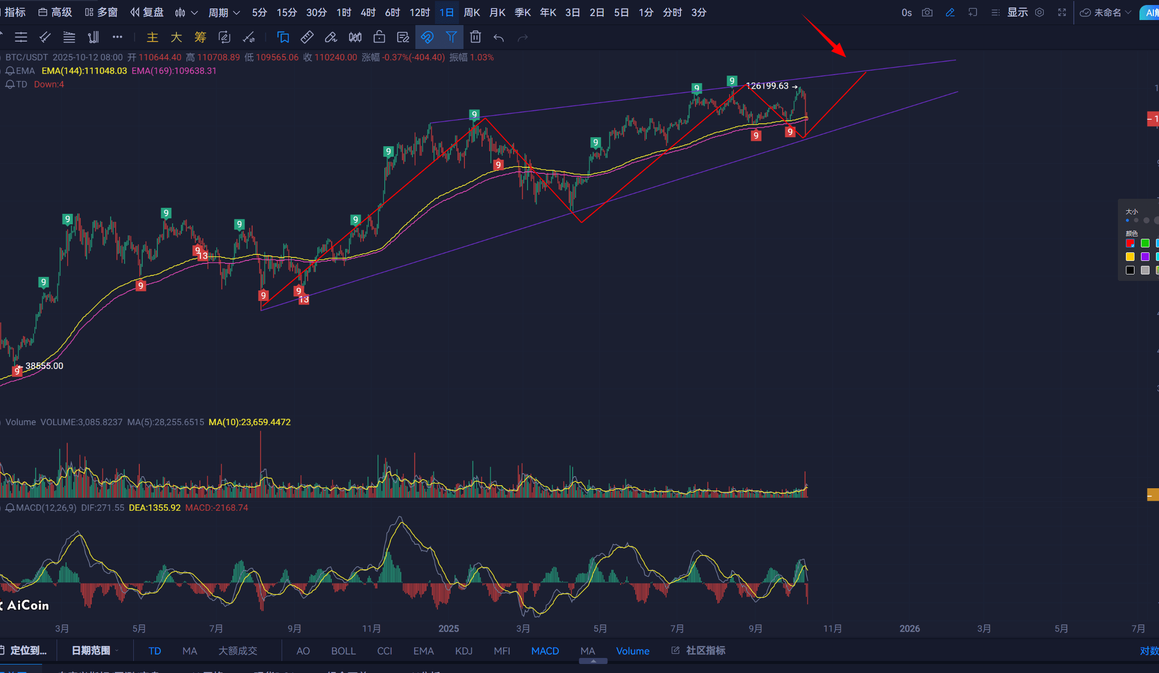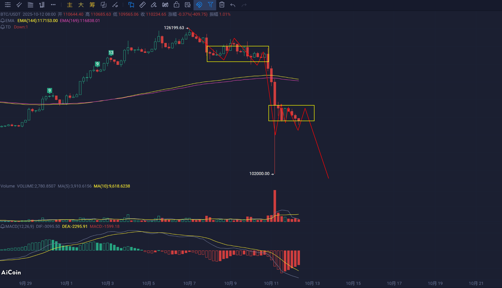同時昨天提出的走勢結構2 那麼就不能破102000美金 行情需要走V反。12.4K-10.7K 是A段 10.7K-12.6K爲強B 12.6-10.2K爲C段 其中走勢複雜 強B強C穿頭破底。